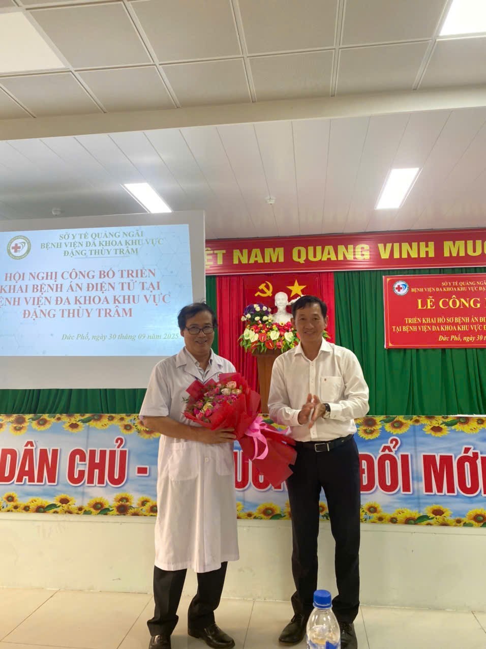 Đến tham dự buổi lễ đại diện lãnh đạo Sở Y tế tỉnh Quảng Ngãi có Tiến sĩ . BS. Võ Văn Thanh, tỉnh ủy viên, Giám đốc Sở Y tế; BS CKII Phan Minh Đan, Phó Giám đốc Sở Y tế cùng trưởng các khoa phòng chuyên môn của Sở Y tế; đại diện Công ty viễn thông VNPT Quảng Ngãi, BHXH cơ sở Đức Phổ.