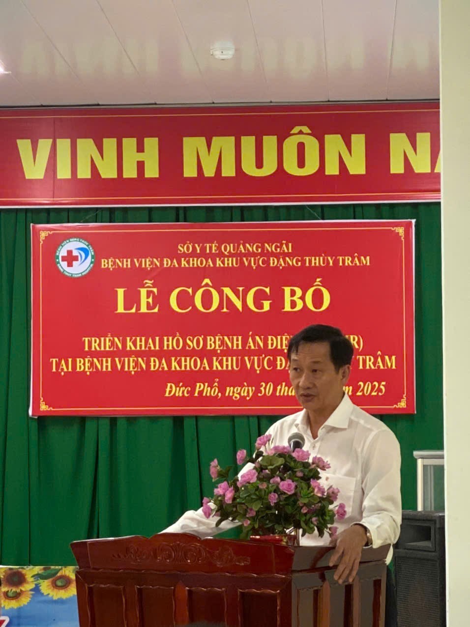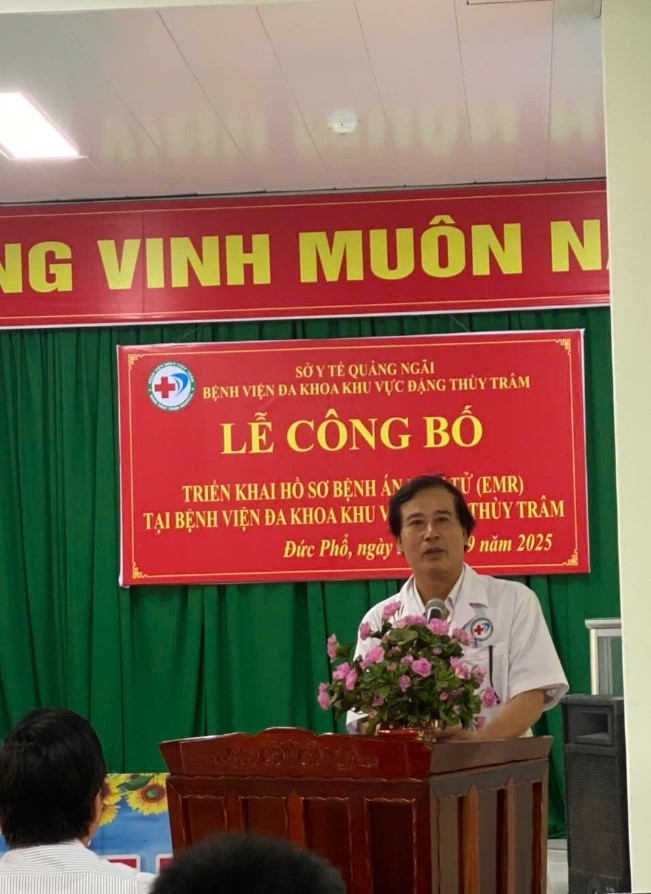 Đại diện Sở Y tế tỉnh Quảng Ngãi Tiến sĩ-BS Võ Văn Thanh, Giám đốc Sở Y tế ghi nhận và biểu dương nỗ lực của tập thể viên chức, người lao động Bệnh viện Đa khoa khu vực Đặng Thùy Trâm trong việc chủ động nghiên cứu, học hỏi để triển khai thành công hồ sơ bệnh án điện tử. Đây là dấu mốc quan trọng trong chuyển đổi sổ của đơn vị và tỉnh nhà, góp phần số hóa dữ liệu, tăng cường sự chính xác đồng thời giảm thiểu thủ tục hành chính, việc triển khai bệnh án điện tử thay thế hoàn toàn cho bệnh án giấy, nâng cao chất lượng khám chữa bệnh, chăm sóc sức khỏe cho nhân dân; Đề nghị bệnh viện tiếp tục hoàn thiện để làm cơ sở thực hiện thanh toán chi phí khám, chữabệnh trên nền tảng số hóa.